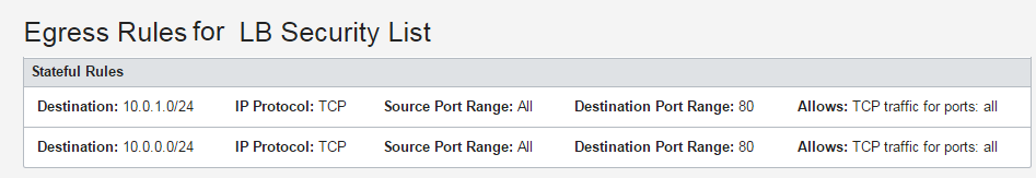 Image shows egress rules added to the load balancer's subnets' security list