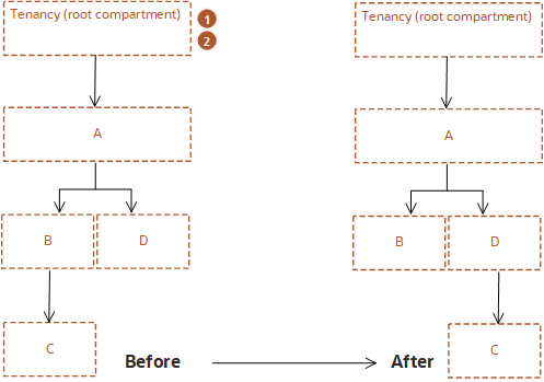 For example, assume compartment A and compartment B are both under the root compartment. Under compartment A is a subcompartment, also called compartment B. You cannot move the compartment B to the parent compartment B.