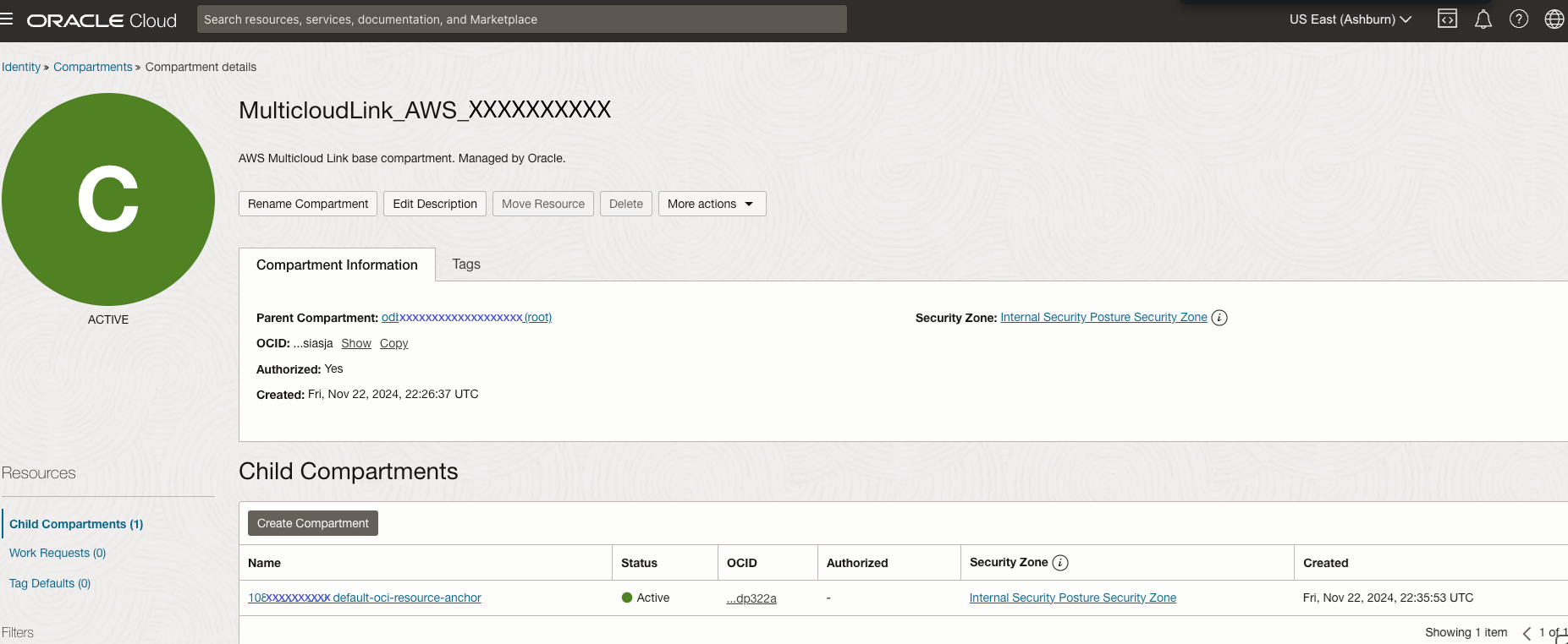 After you link an OCI account, you can confirm Oracle Database@AWS activation by checking a few pages in the Oracle Cloud Console.