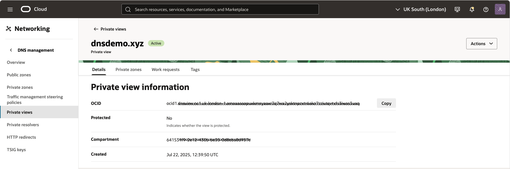 - Go to Networking > DNS Management > Private Views.